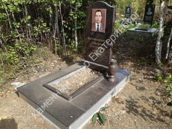 Памятник из Дымовского гранита 1200*600*70, тумба , цветник портрет 30*40 керамогранит, плитка верх Дымовский гранит, торец серый гранит